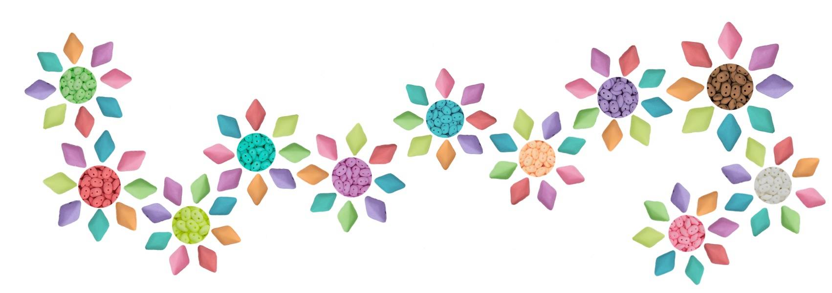 Léto, láska ke korálkům a svoboda tvoření. K dispozici na korálcích Gemduo 8 x 5 mm a Superduo 2,5 x 5 mm.