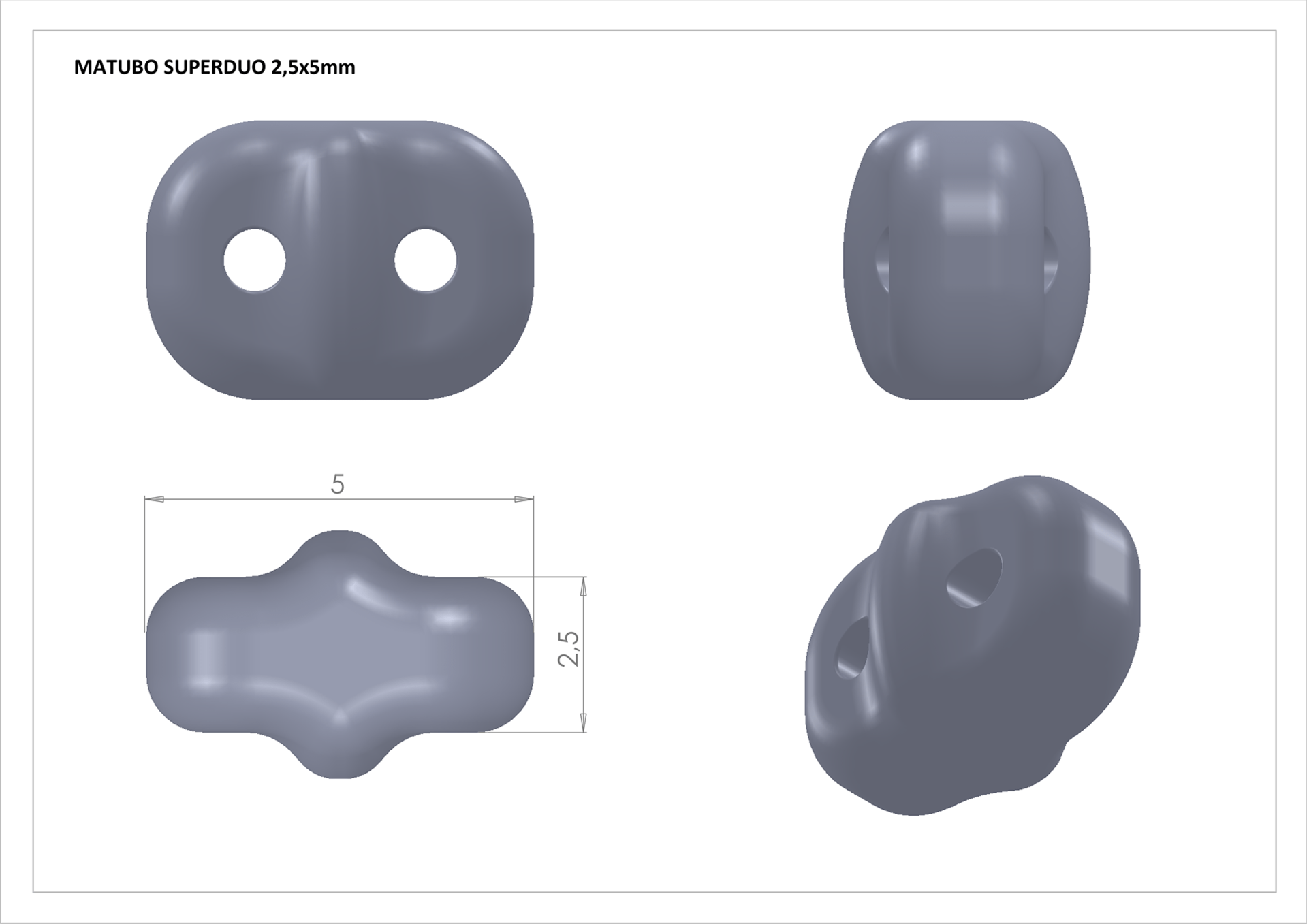 Nejznámější dvoudírový korálek. Precizně zpracovaný a tvarovaný výrobek s garantovanou velikostí a tvarovou stálostí sloužící k tvorbě víceřadých návleků.