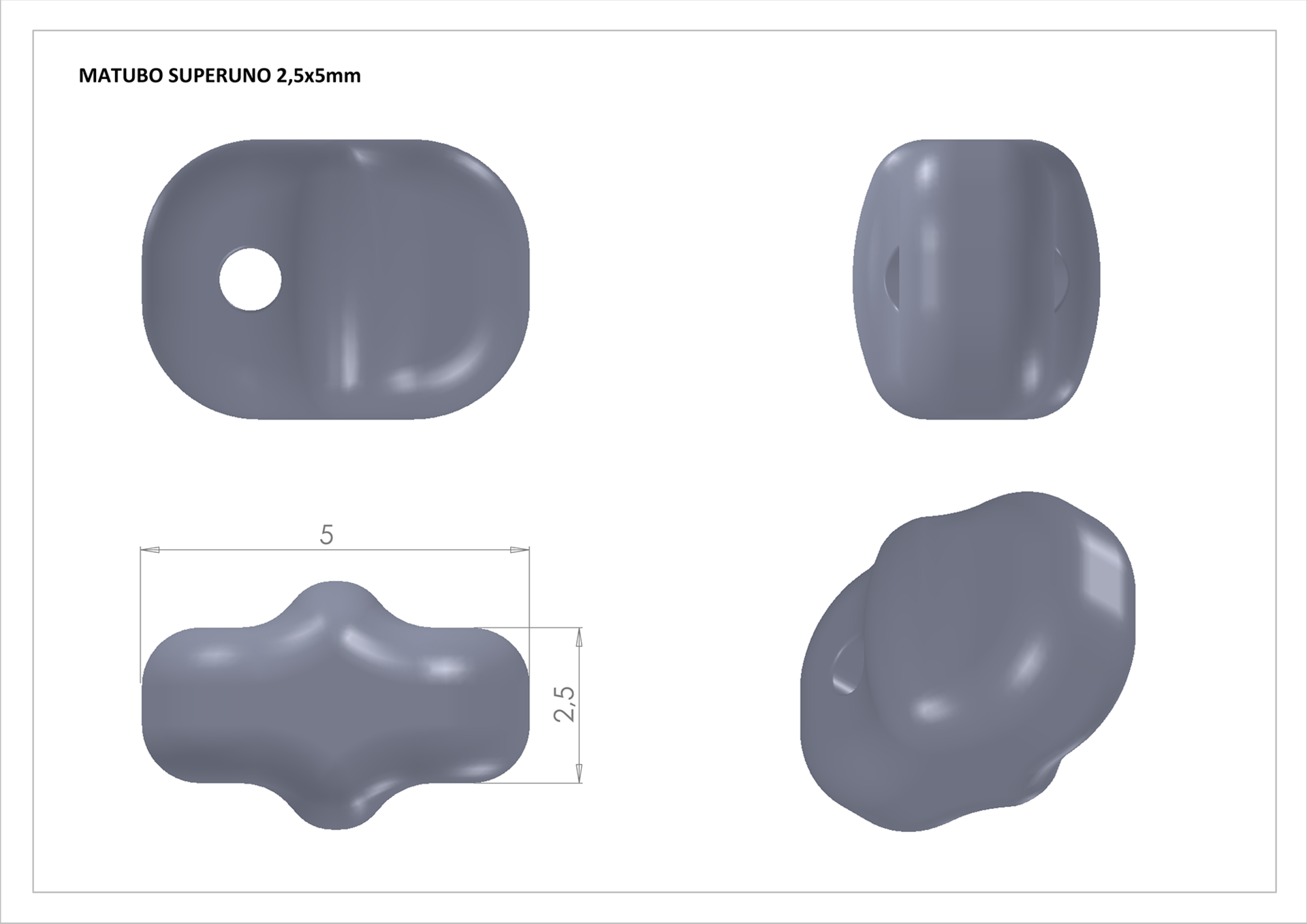 Jednodírový korálek stejného tvaru a velikosti jako korálek superduo s garantovaným tvarem a velikostí.